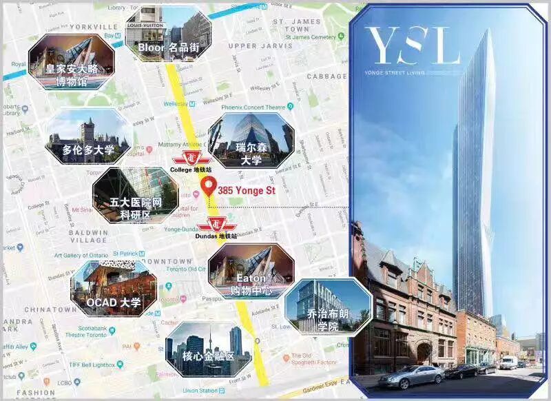 YSL楼盘位于市中心最繁华的地段–Yonge & College 东南角